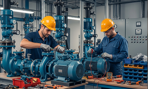 Instalação de motores e bombas d'água com as melhores ferramentas e pessoal. Teste de isolação - Megômetro.